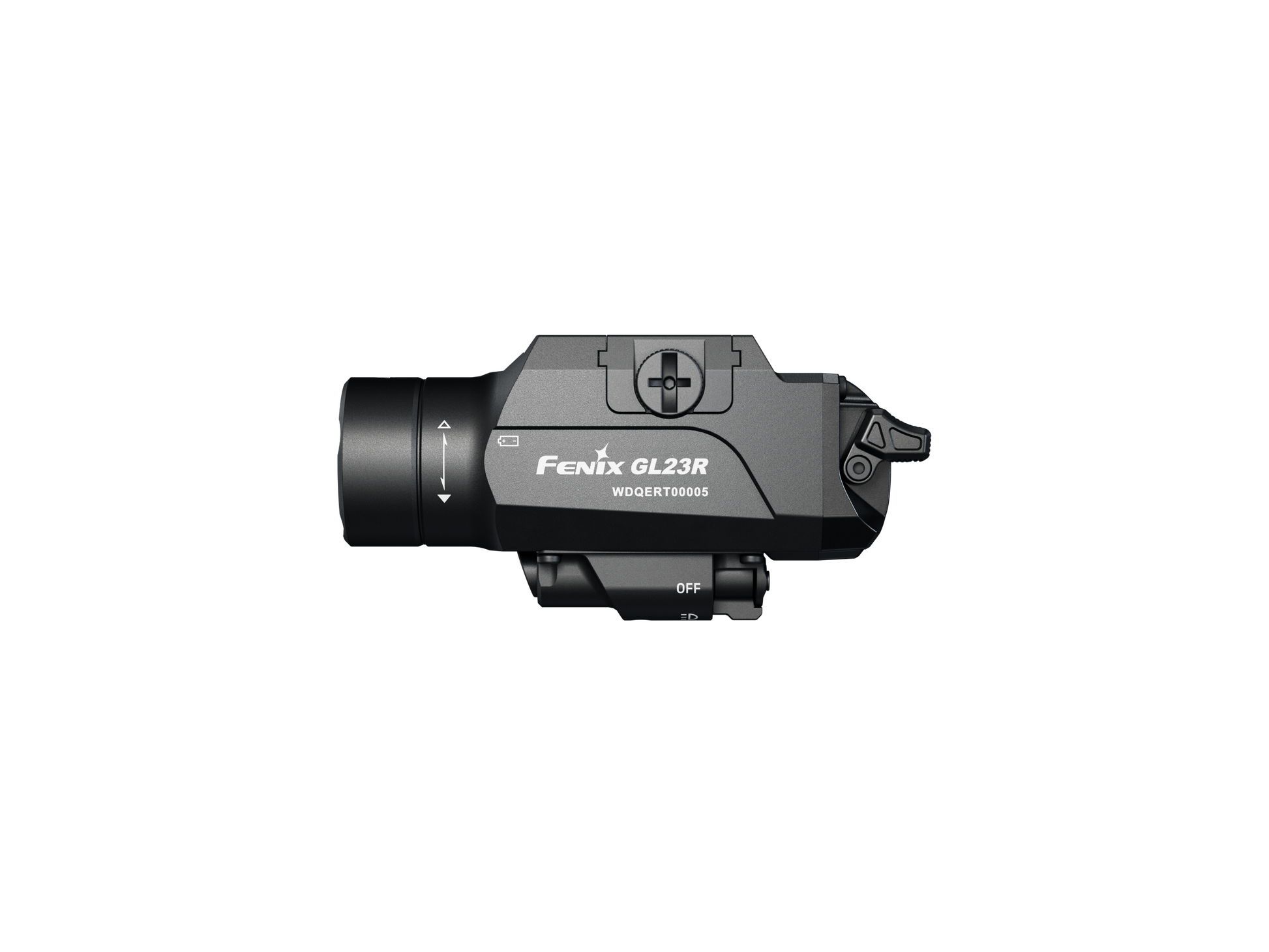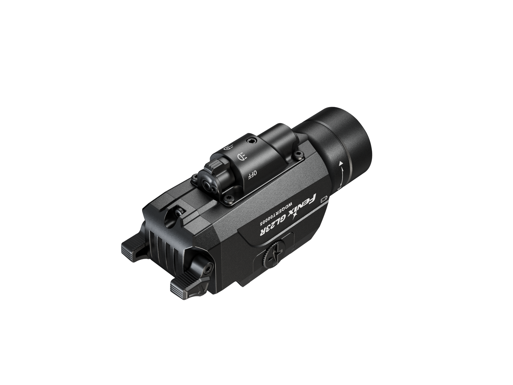 The Fenix GL23R is a powerful, compact pistol-mounted tactical light designed for optimal performance in any situation. With a 1200-lumen maximum output and a precise 520 nanometer green laser, this light ensures superior visibility and accuracy. The GL23R features modular, customizable switches with ambidextrous power and output selection, allowing seamless operation for both left- and right-handed users. Its compact and lightweight body, measuring under 4 inches and weighing just over 4 ounces, makes it an ideal fit for any firearm. Capable of illuminating targets up to 240 meters away, the GL23R also boasts a minimal laser offset of less than .8 mm for precision shooting. Built to endure, it withstands a 10,000-cycle shock test and over 5,000 rounds of simulated live fire while maintaining a 2MOA accuracy. The USB-C rechargeable light includes a Glock mounting plate and a 1913 Picatinny rail plate, ensuring compatibility with a wide range of firearms. With an impressive 13-hour green laser runtime and IP66-rated waterproofing, the GL23R is engineered to perform in even the toughest conditions.