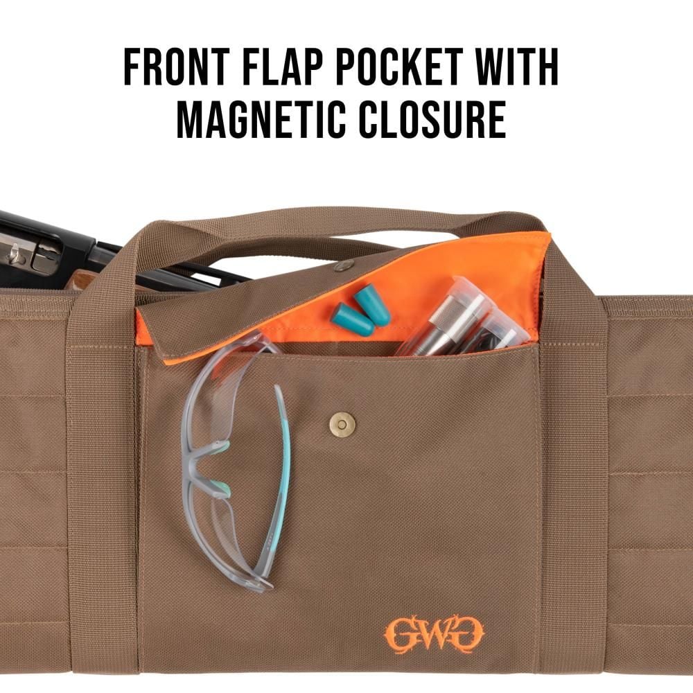 The GWG® Highland Shotgun Case is designed to fit shotguns up to 52-inches. The exterior is made of a quilted polyester material finished with brass finish hardware.