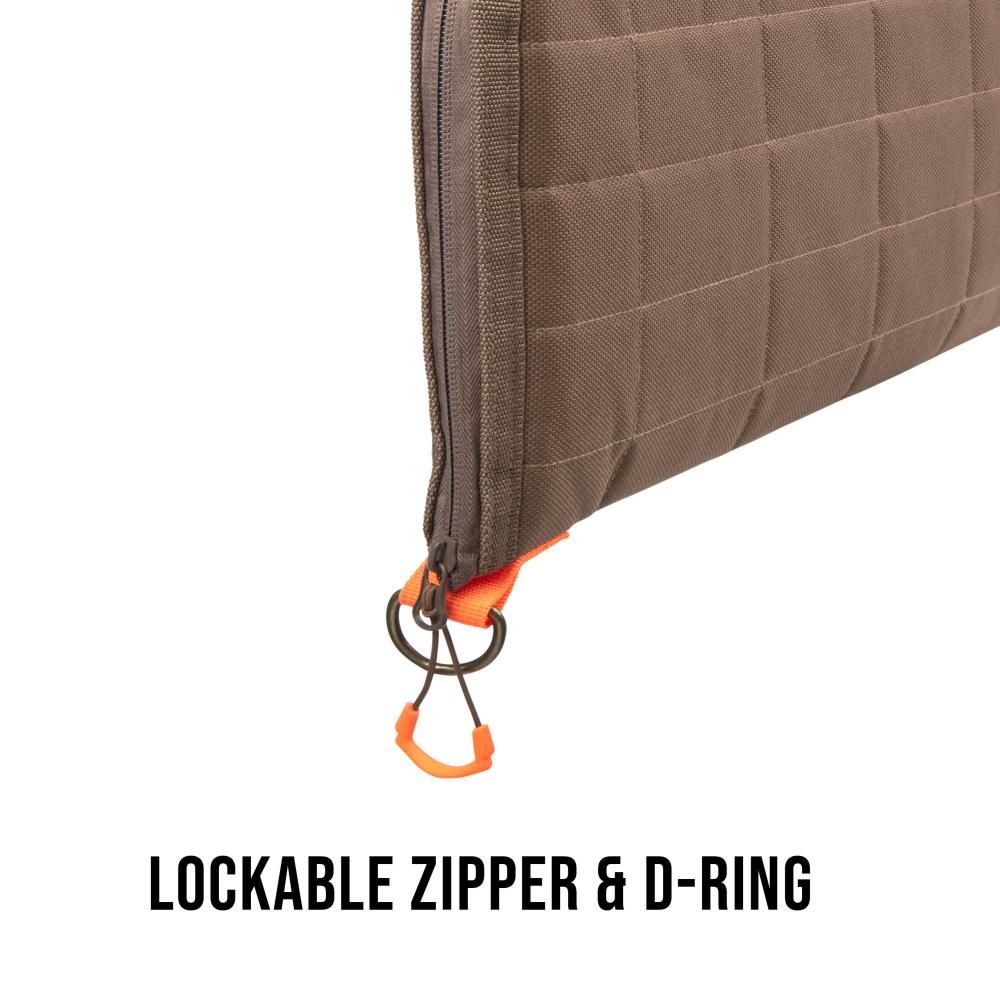 - SAFE & SECURE: Safely secure your firearm when not in use with the lockable zippers & a metal D-ring, compatible with a lock (lock not included).