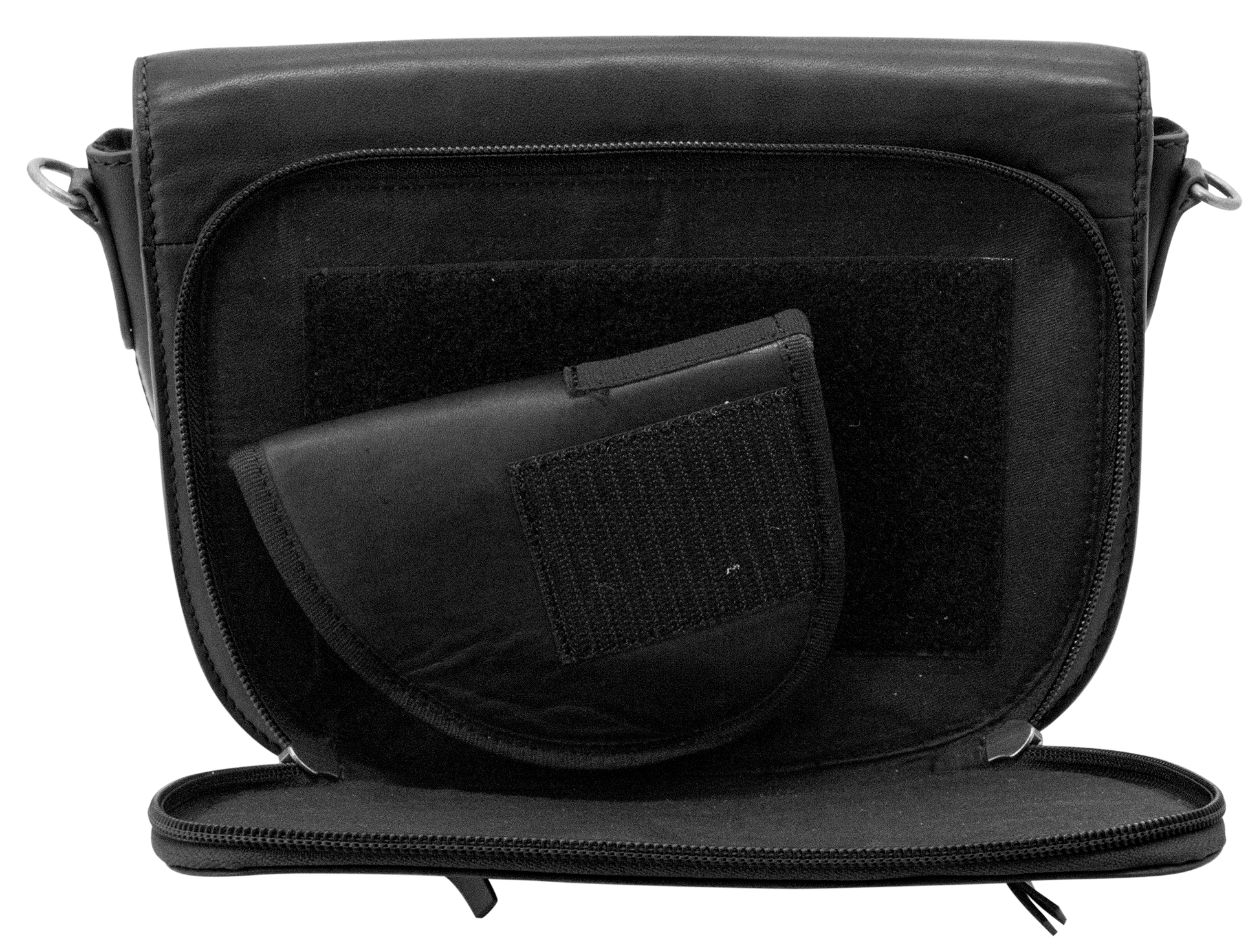Sophia has a rear, individual CCW pocket with full 270*, two-way zipper access. The CCW compartment is padded, with velcro lining on one side, and comes equipped with a matching holster with velcro on either side to allow you to personalize the placement within the pocket for maximum comfort and confidence while carrying.