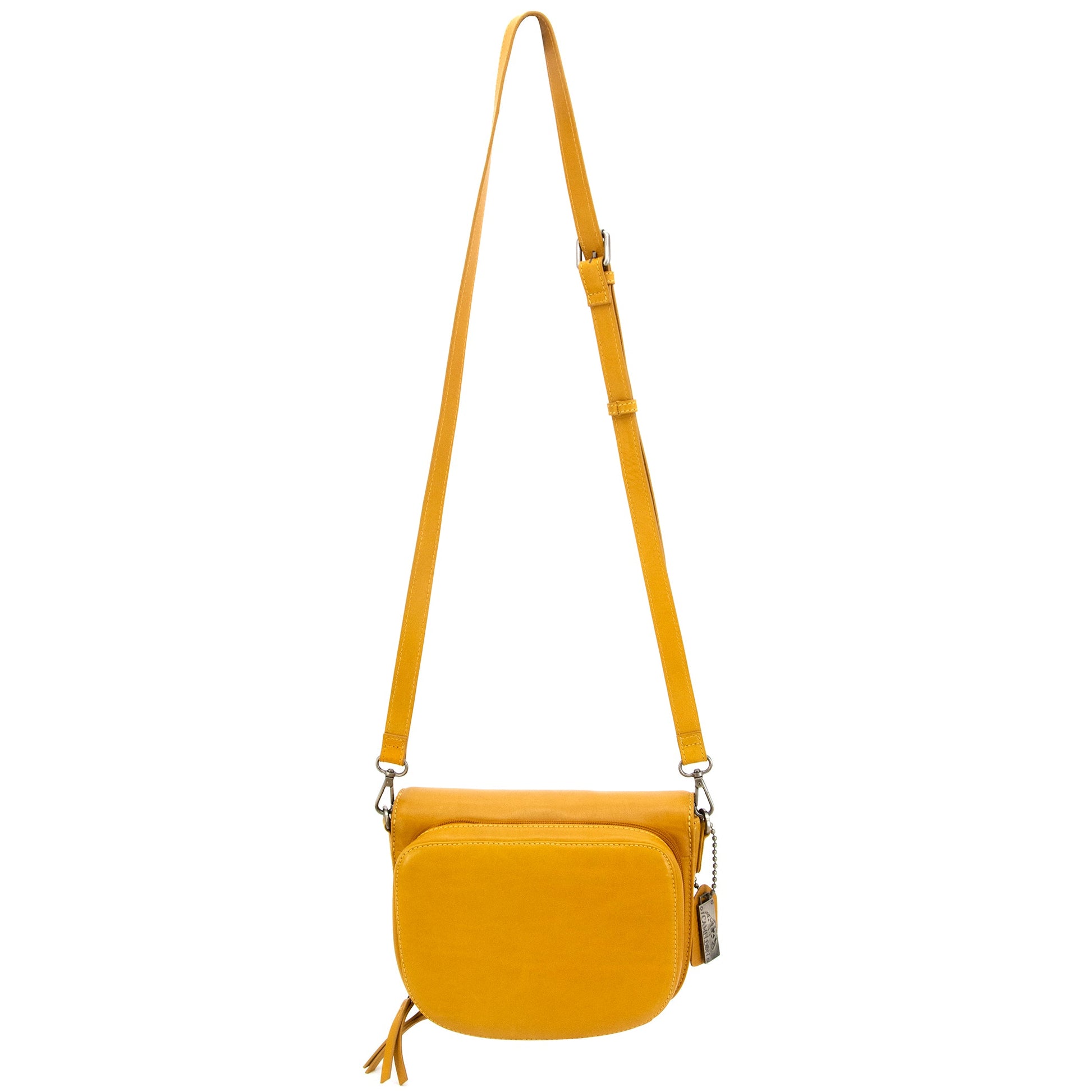 Sophia, from our new Maia VT Leather Series, is a saddle bag adjustable crossbody with an accordion design. It features a half flap front with hidden magnetic snap closure. The structured main compartment is spacious with a deep, open pocket on one side.